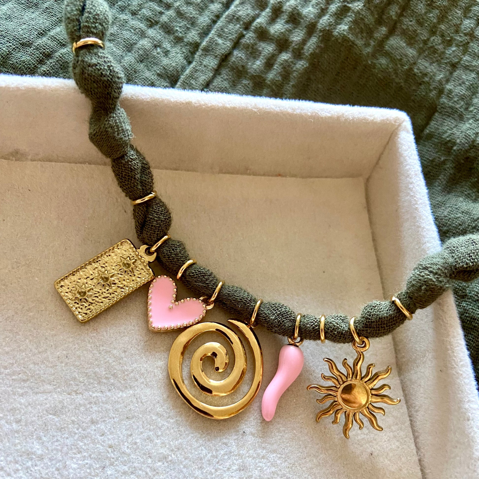 Notre modèle peut se porter en collier, en bracelet mais également en bracelet de cheville.