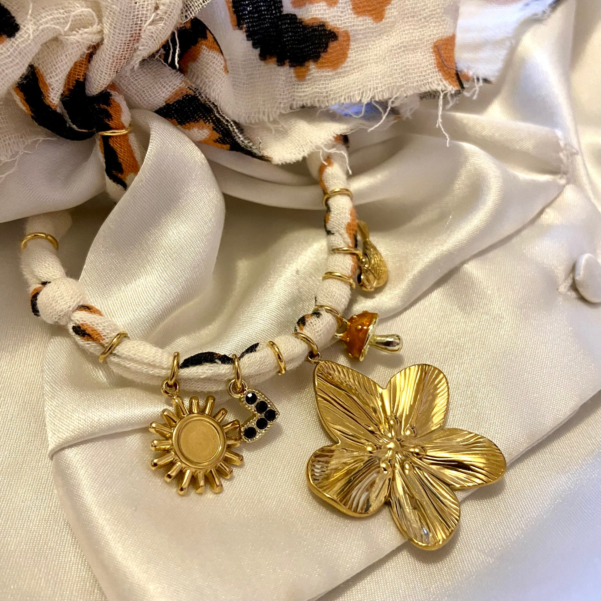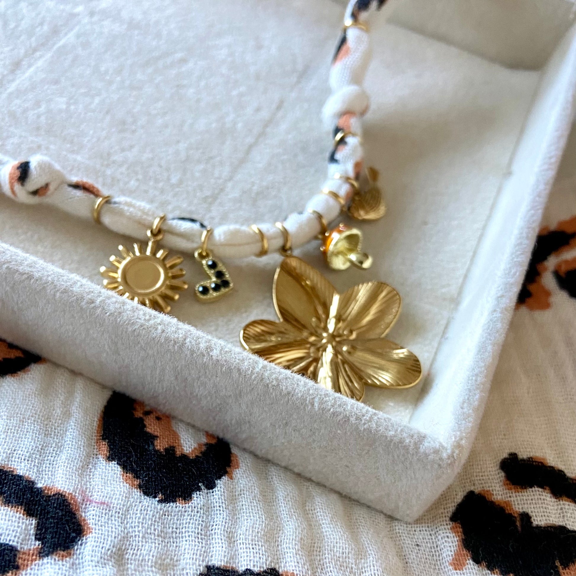 Notre modèle peut se porter en collier, en bracelet mais également en bracelet de cheville.